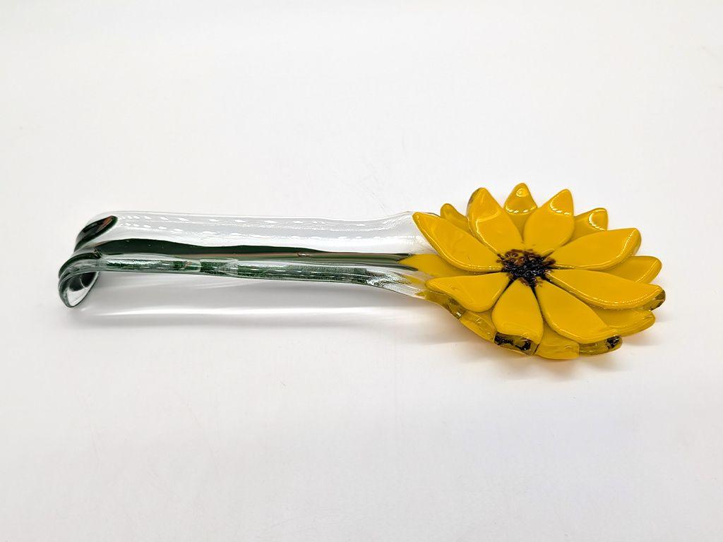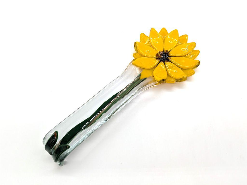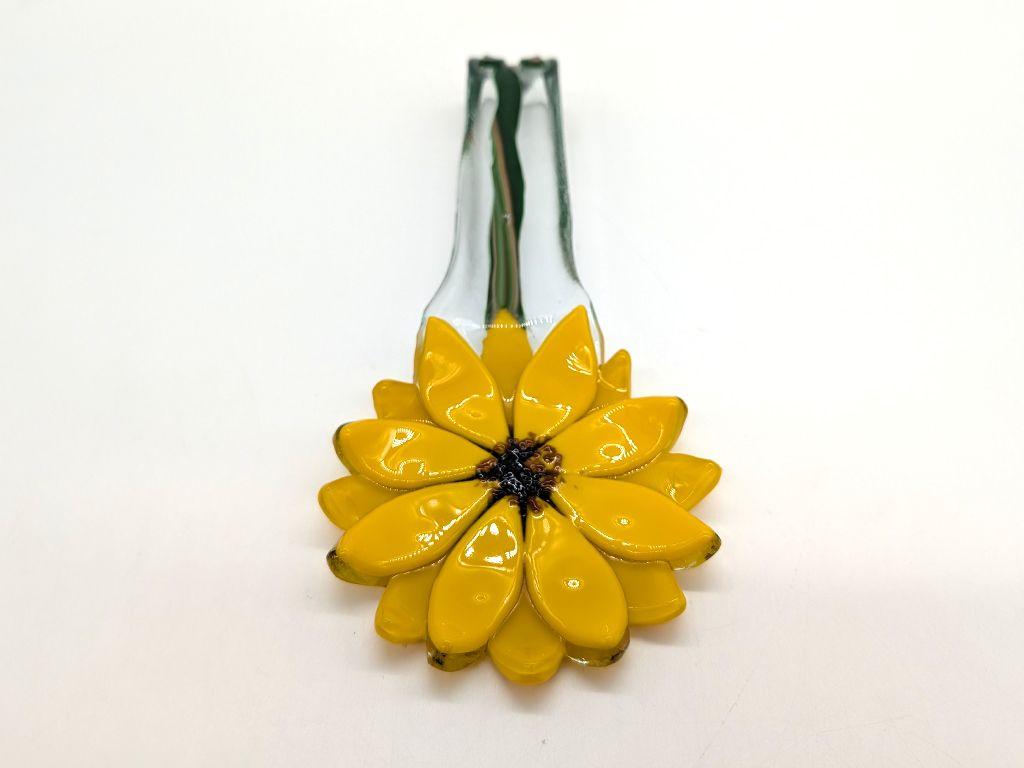 Gorgeous yellow and green fused glass sunflower spoon rest.