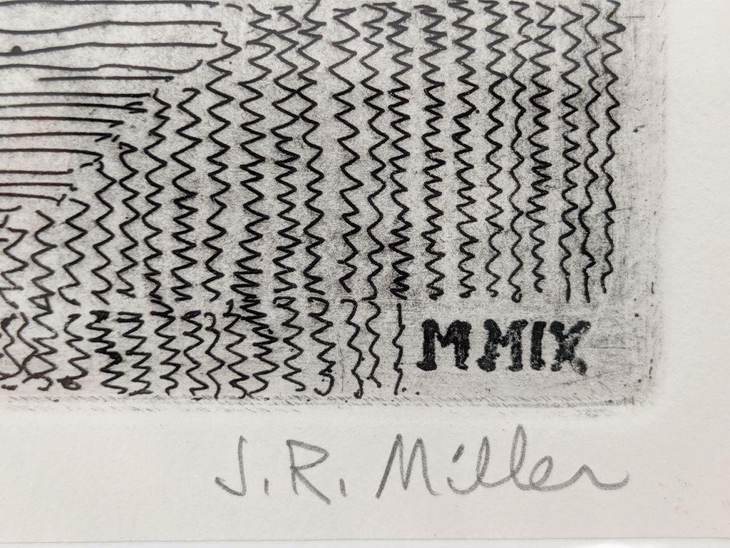 This detailed, black and white framed print is # 67 of 100. Print made from original etching by Jack Miller and signed by the artist. As seen in the Museum of Eureka Springs Art.